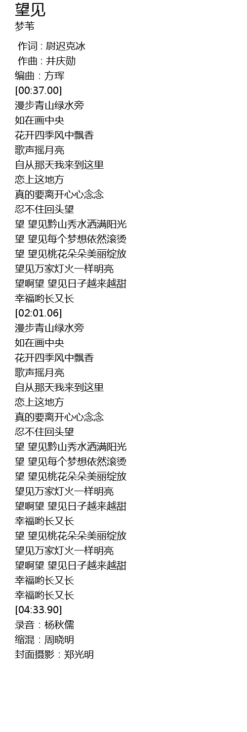 | [02:55.34] | 望 望见黔山秀水洒满阳光 |