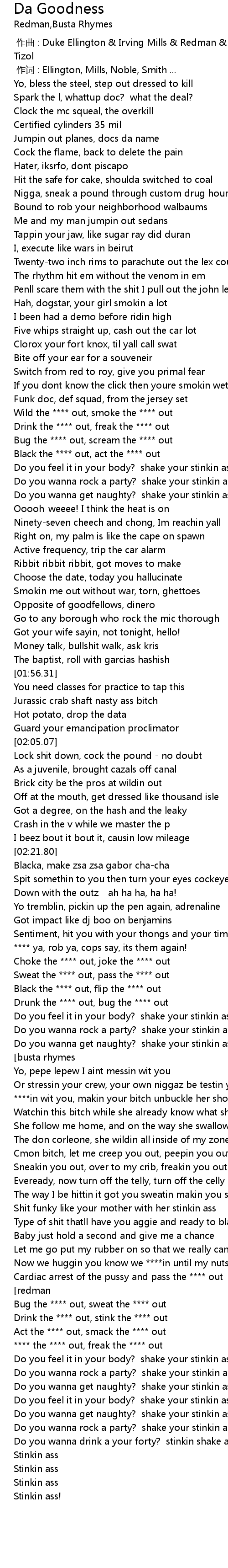 | [02:53.15] | Do you wanna get naughty? shake your stinkin ass |