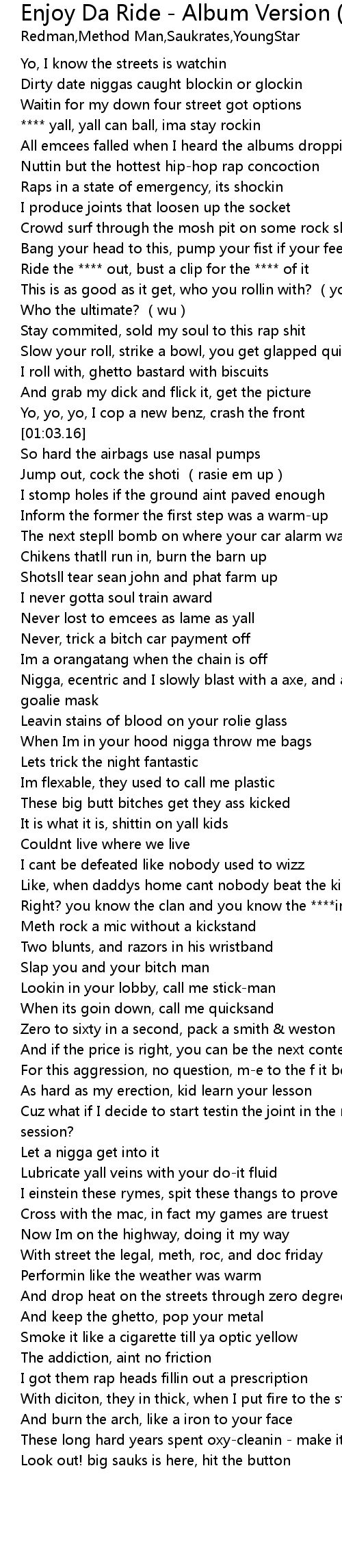 | [00:42.62] | Ride the **** out, bust a clip for the **** of it |