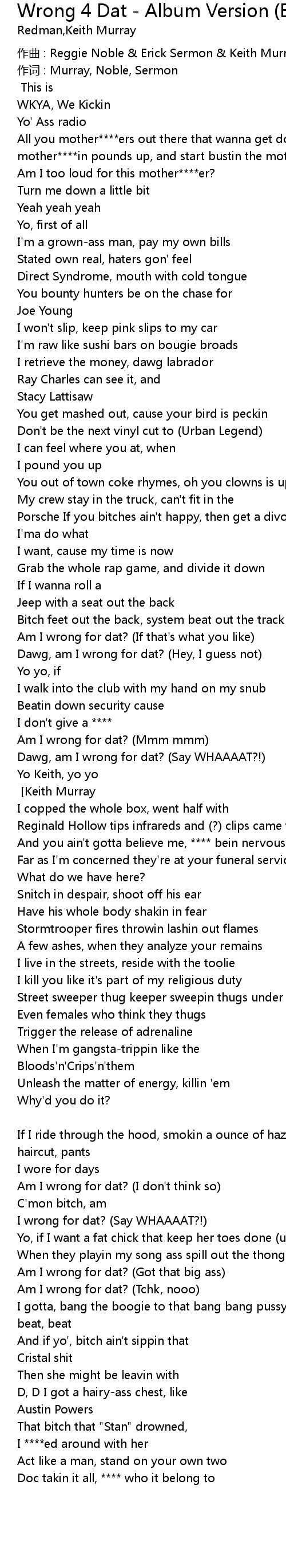 | Song | Wrong 4 Dat - Album Version (Explicit) |
