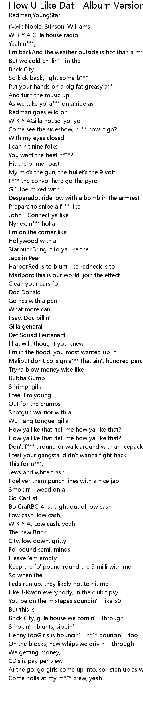 | How ya like that, tell me how ya like that? | |