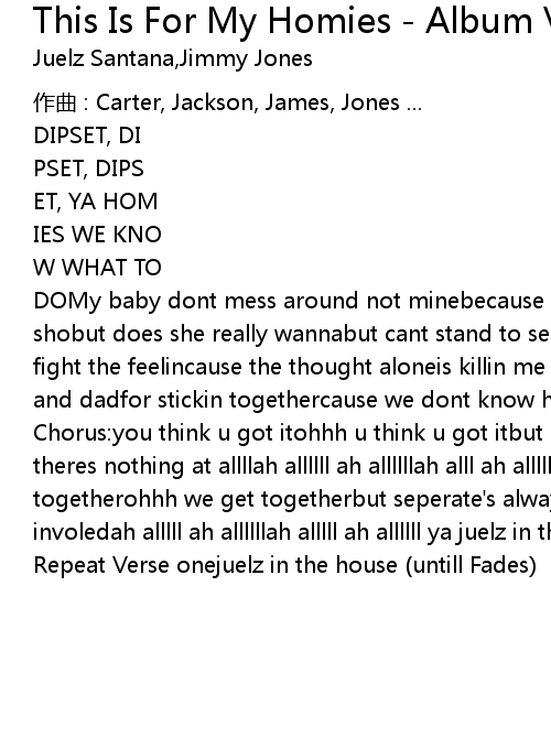 | Chorus: you think u got itohhh u think u got itbut got it just dont get itcause theres nothing at allllah allllll ah allllllah alll ah allllllwe get togetherohhh we get togetherbut seperate' s always betterwhen' s theres feelings involedah alllll ah allllllah alllll ah allllll ya juelz in the house | |