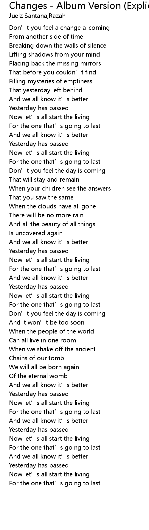| Don' t you feel a change acoming | |