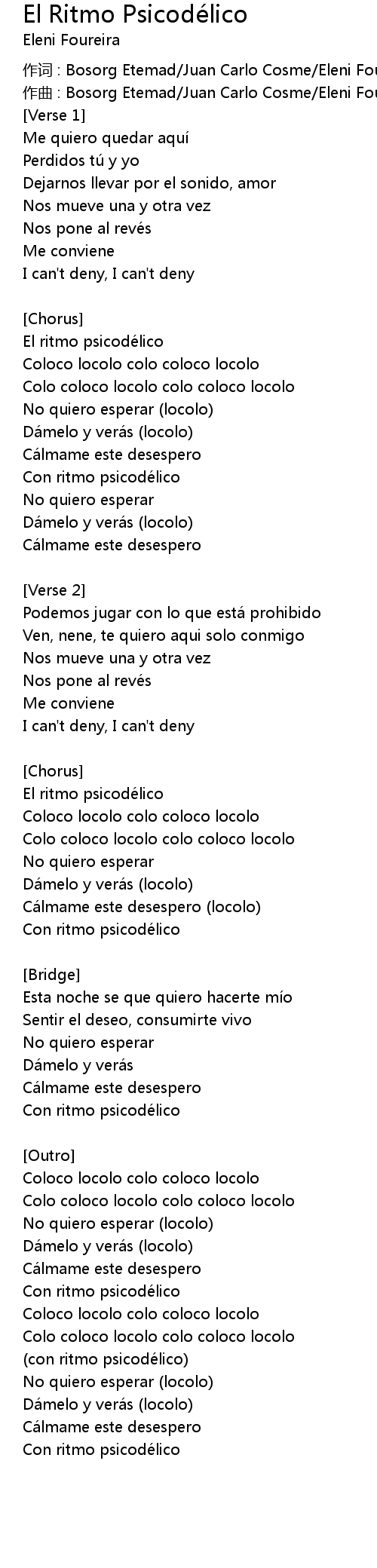 | Coloco locolo colo coloco locolo | |