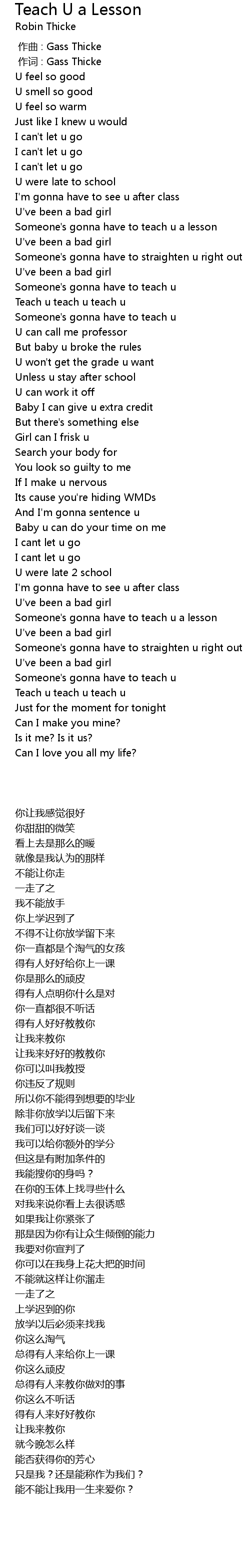 | [01:14.43] | Someone's gonna have to teach u a lesson |