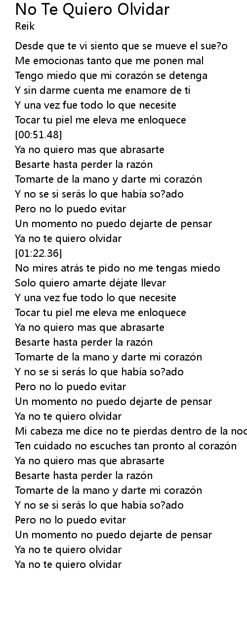 | [02:22.61] | Ya no te quiero olvidar |