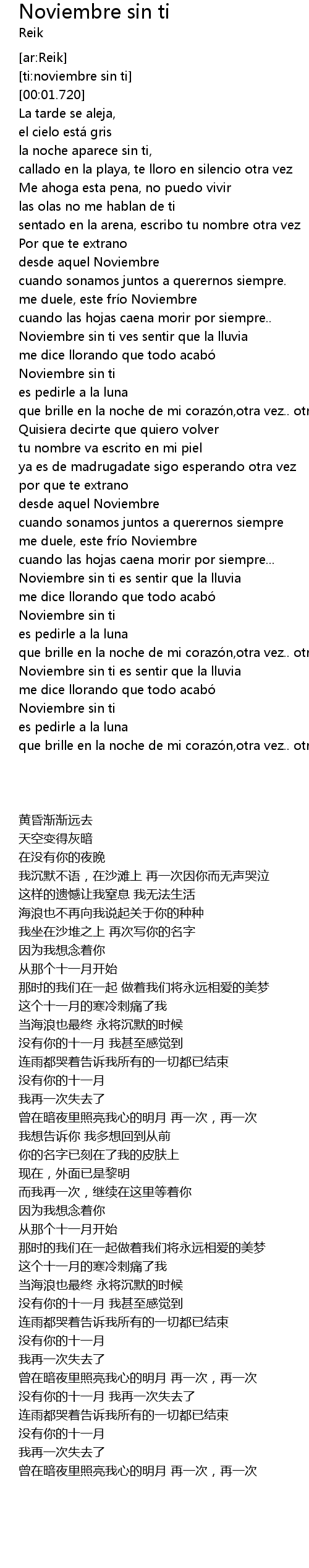 | [02:33.370] | Noviembre sin ti es sentir que la lluvia |