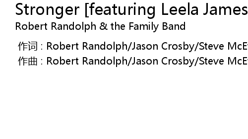 | [00:00.000] | 作词 : Robert Randolph/Jason Crosby/Steve McEwan/Danyel Morgan |