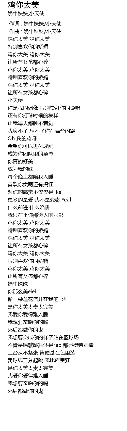| [01:37.817] | 鸡你太美 鸡你太美 |