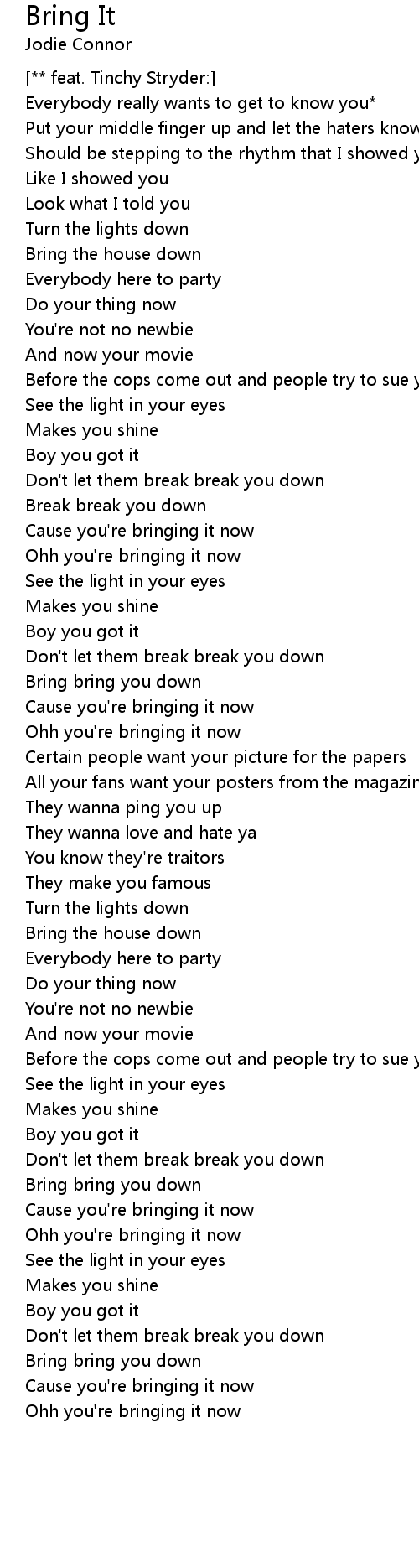 Cause you're bringing it now |