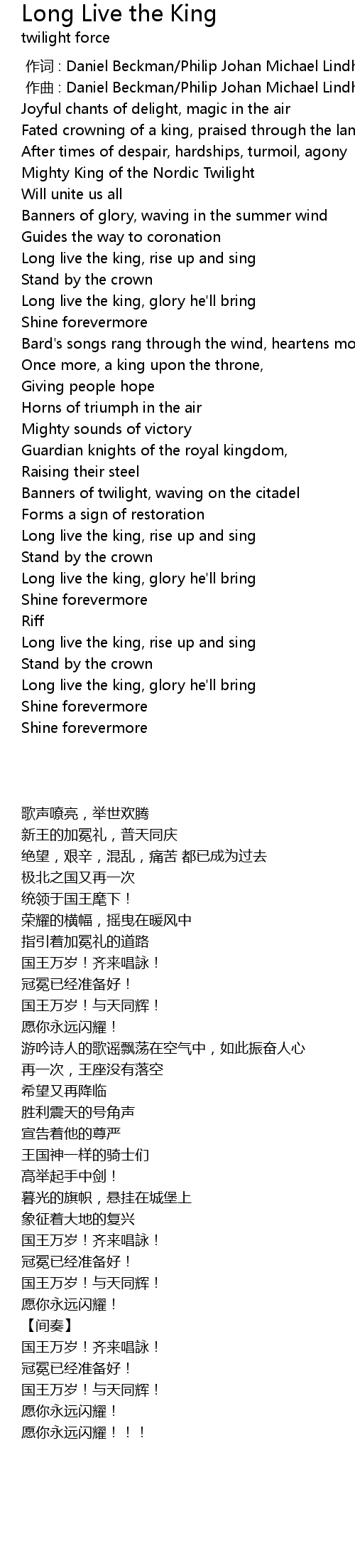 | [03:34.39] | Long live the king, rise up and sing |