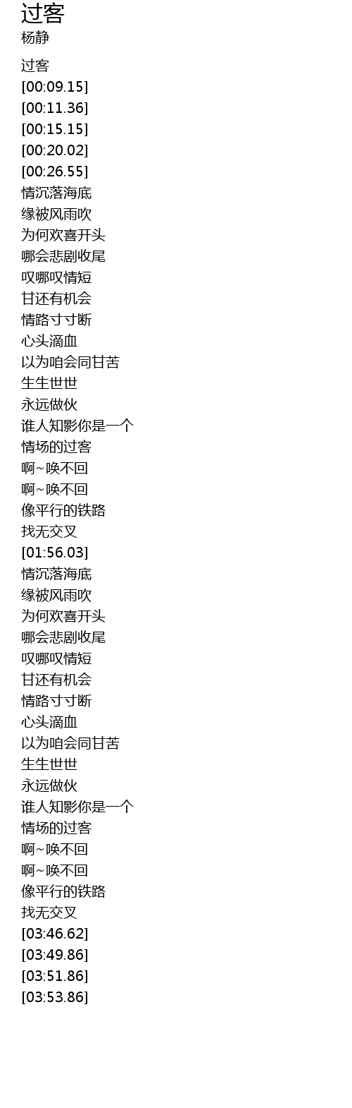 | [03:19.28] | 情场的过客 |