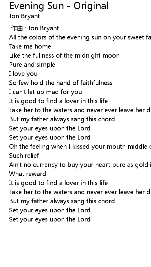 | [00:27.84] | All the colors of the evening sun on your sweet face |