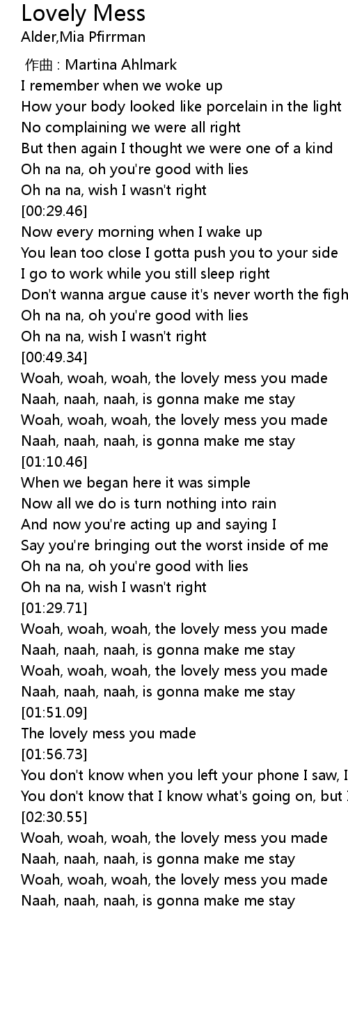 | [00:49.65] | Woah, woah, woah, the lovely mess you made |