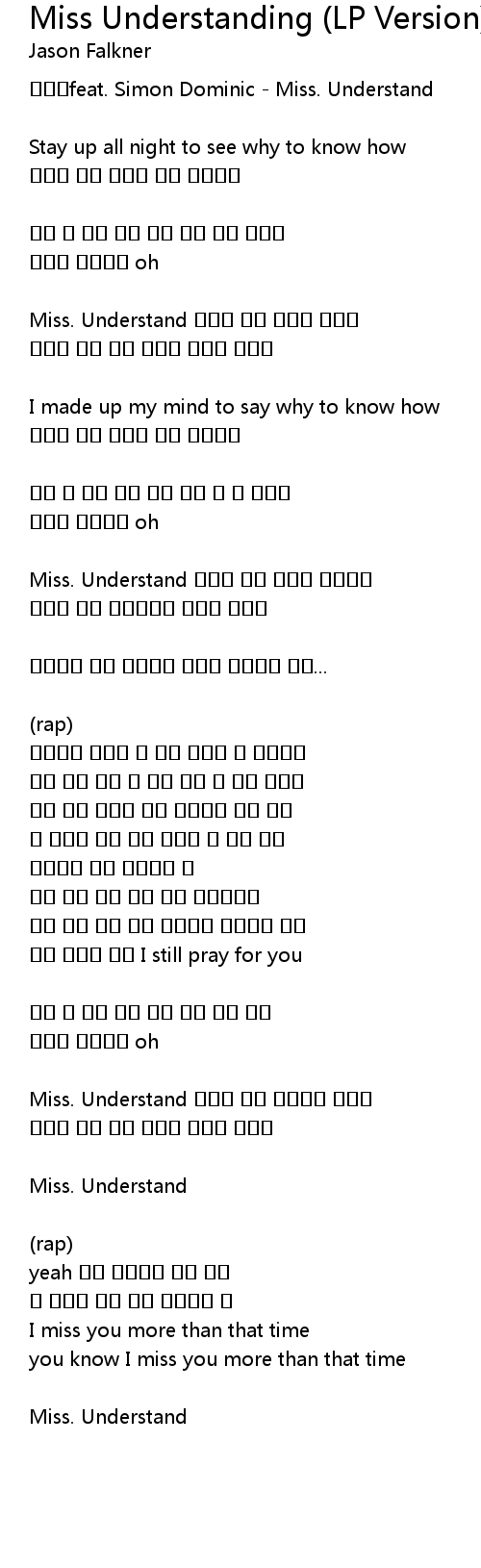 Song Miss Understanding (LP Version)