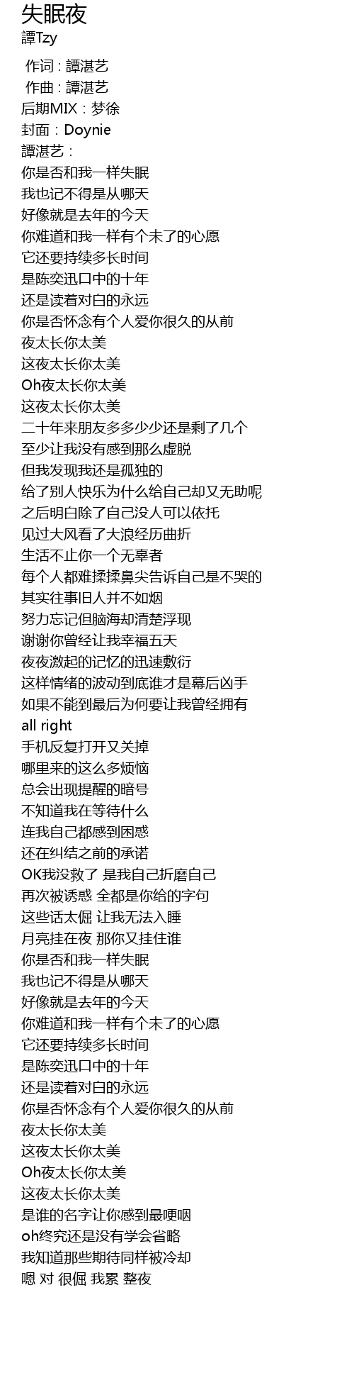 | [00:03.699] | 封面:Doynie |
