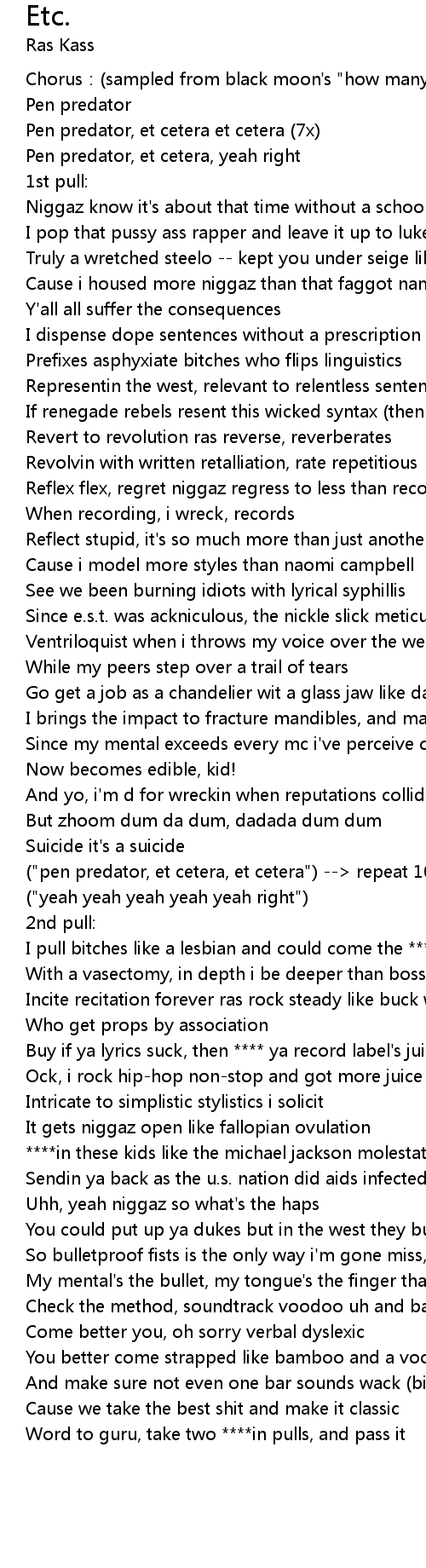 | Chorus:(sampled from black moon's "how many mc's must get dissed") | |