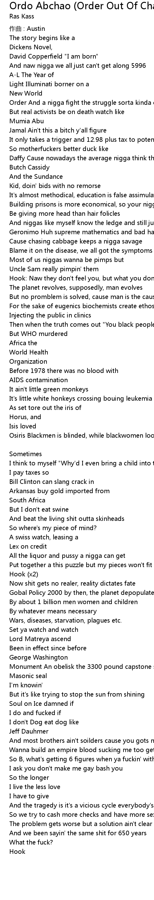 | Song | Ordo Abchao (Order Out Of Chaos) |