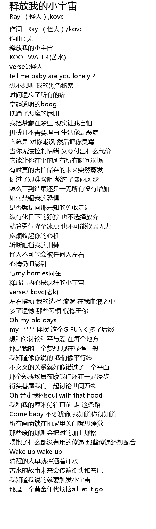| [01:28] | my ***** 摇摆 这个G FUNK 多了后缀 |