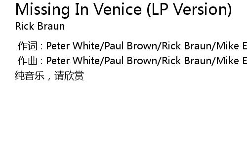 | [00:01.000] | 作曲 : Peter White/Paul Brown/Rick Braun/Mike Egizi |