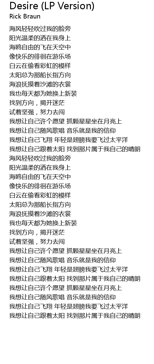 | [03:14.39] | 我想让自己随风歌唱 音乐就是我的信仰 |