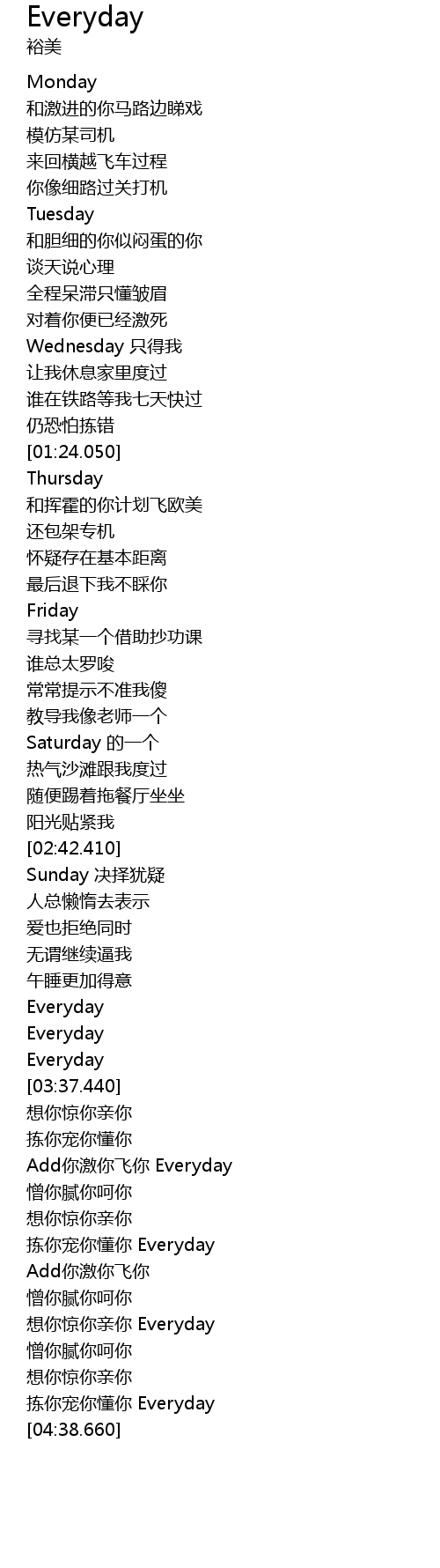 | [03:46.170] | Add你激你飞你 Everyday |