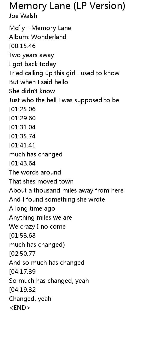Memory Lane (LP Version) Lyrics