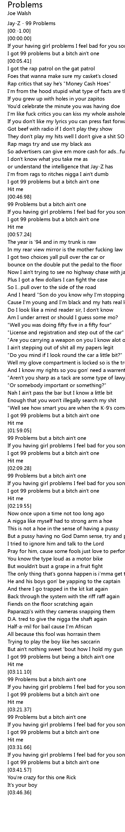[03:08.26] I got 99 problems but being a bitch ain't one