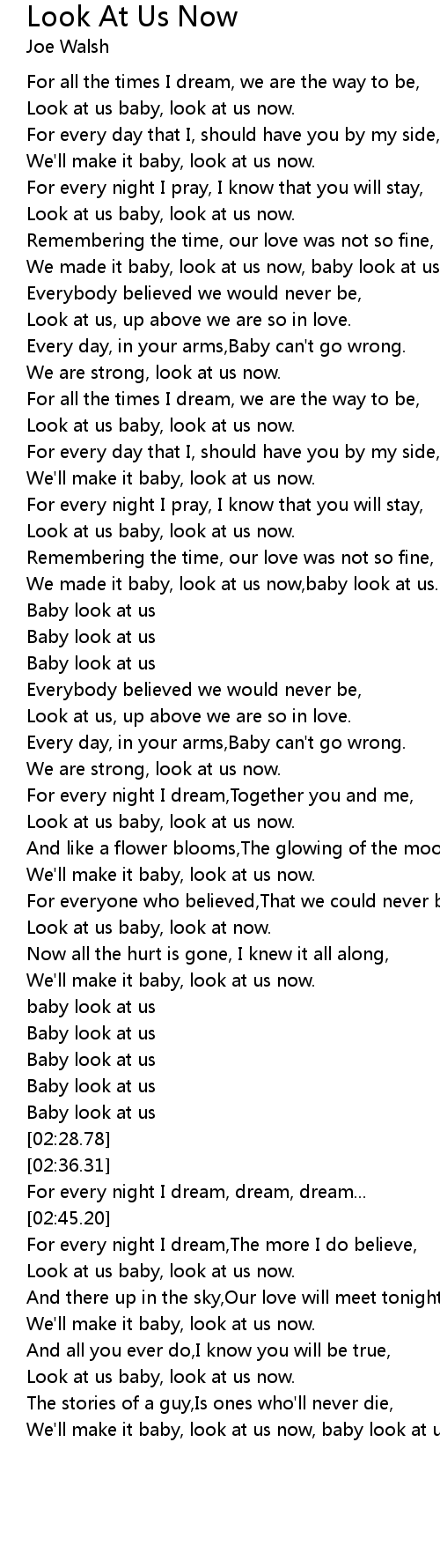 We'll make it baby, look at us now, baby look at us. |
