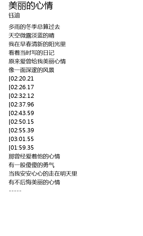 | [01:23.61][02:32.12][03:34.17] | 只有曾天真给过的心 |