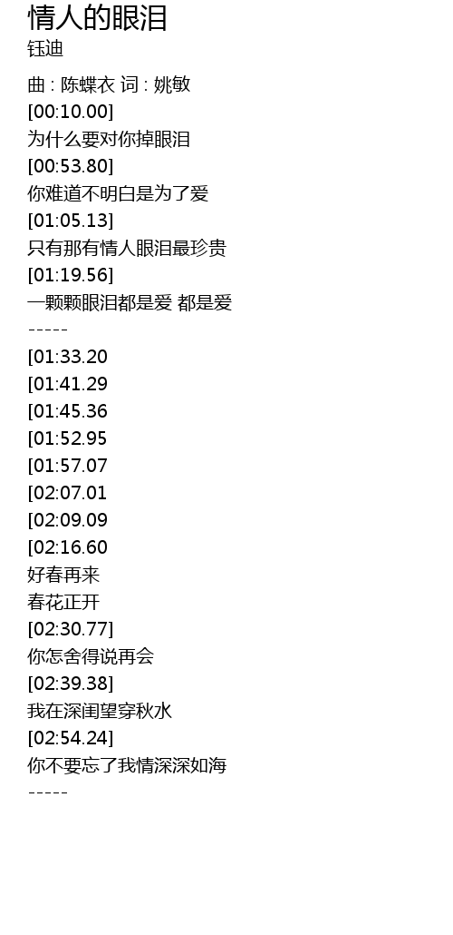 | [00:45.89] | wèi shí me yào duì nǐ diào yǎn lèi |