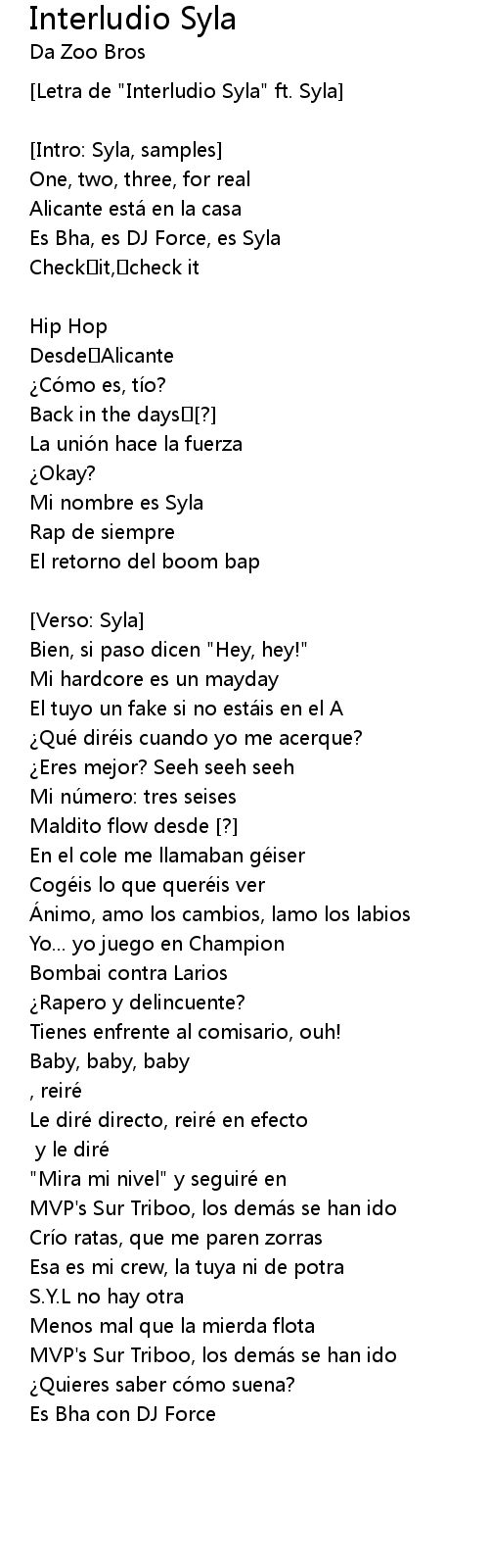 | [Letra de "Interludio Syla" ft. Syla] | |