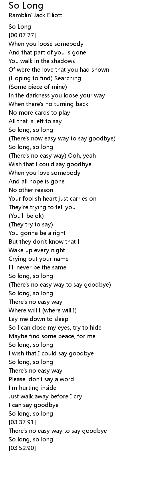 So long, so long |