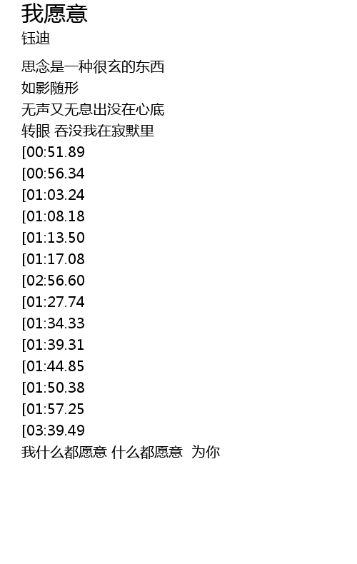 | [03:14.00][01:39.31] | 我愿意为你 我愿意为你 |