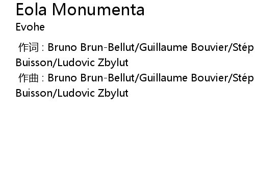 | [00:00.000] | 作曲 : Bruno Brun-Bellut/Guillaume Bouvier/Stéphane Buisson/Ludovic Zbylut |