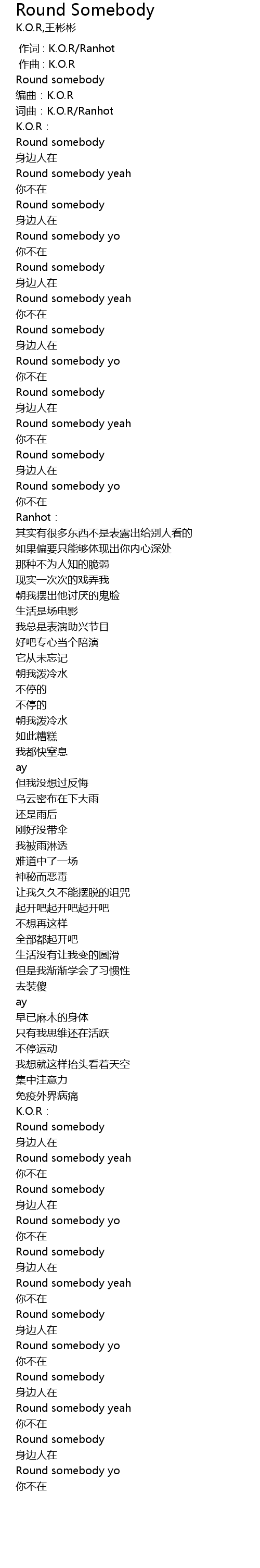 | [00:00.000] | 作词 : K.O.R/Ranhot |