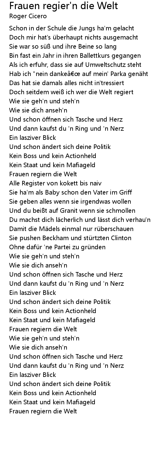 | Doch seitdem weiß ich wer die Welt regiert | |
