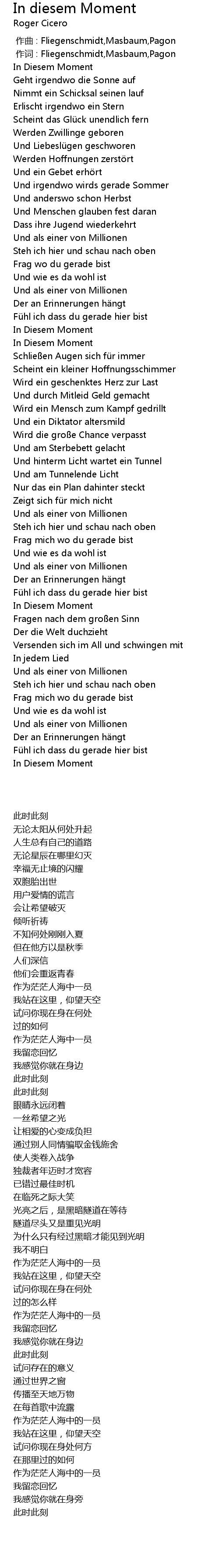 | [00:01.00] | zuò cí : Fliegenschmidt, Masbaum, Pagon |