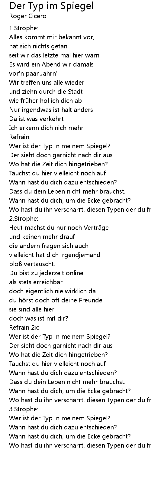| Wo hast du ihn verscharrt, diesen Typen der du frü her mal warst. | |
