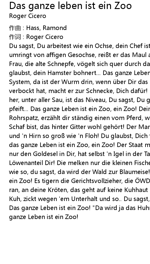 | Song | Das ganze leben ist ein Zoo |