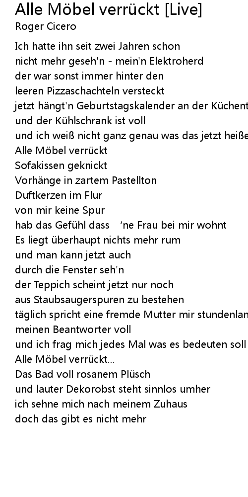| Song | Alle Möbel verrückt [Live] |