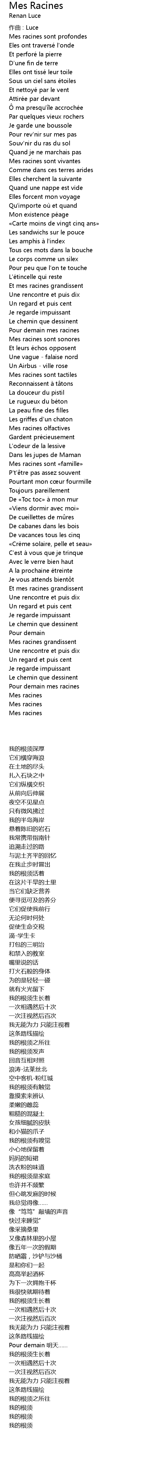 | Song | Mes Racines |