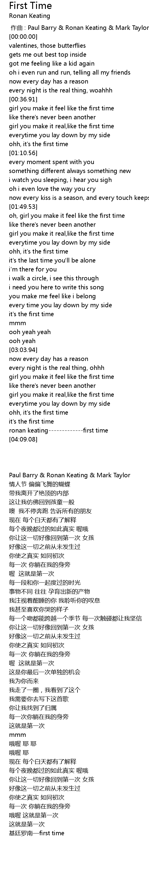 | [00:00.00] | zuo qu : Paul Barry Ronan Keating Mark Taylor |