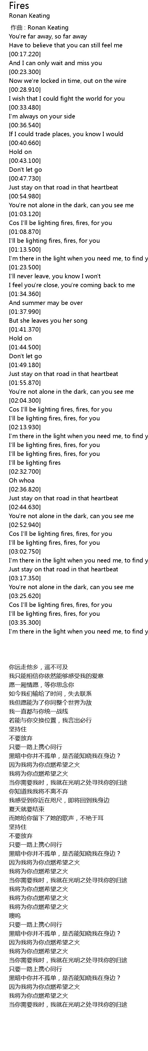 | [03:27.490] | Cos I'll be lighting fires, fires, for you |