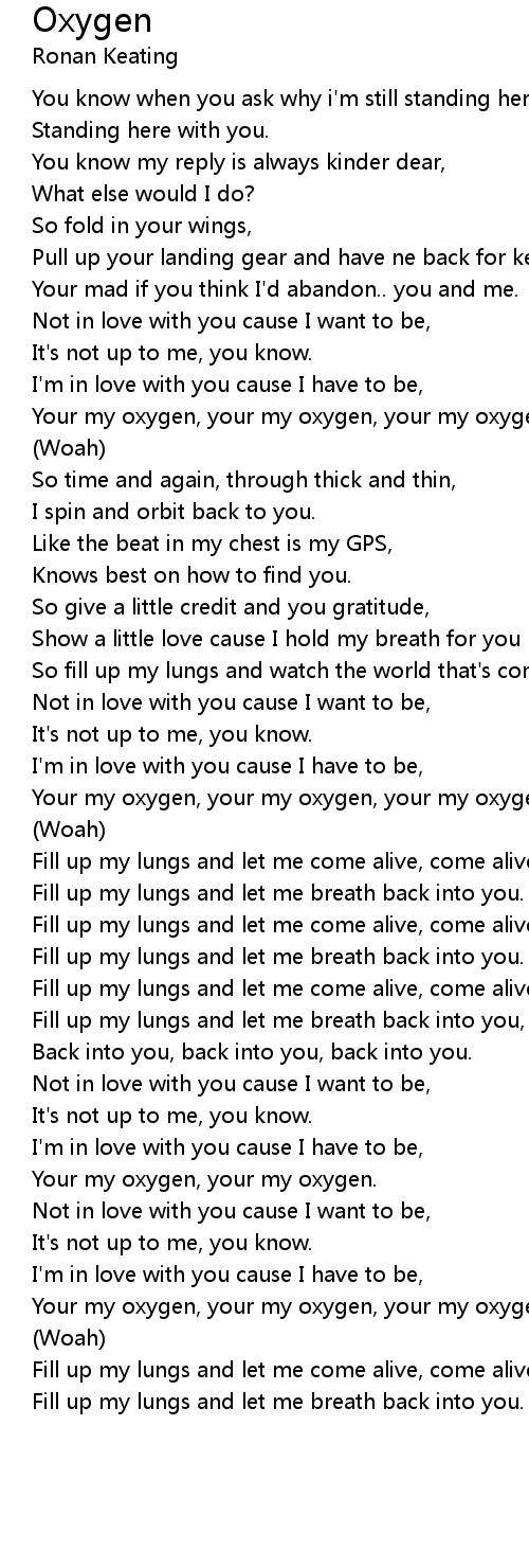 Your my oxygen, your my oxygen, your my oxygen and I breath you in. |