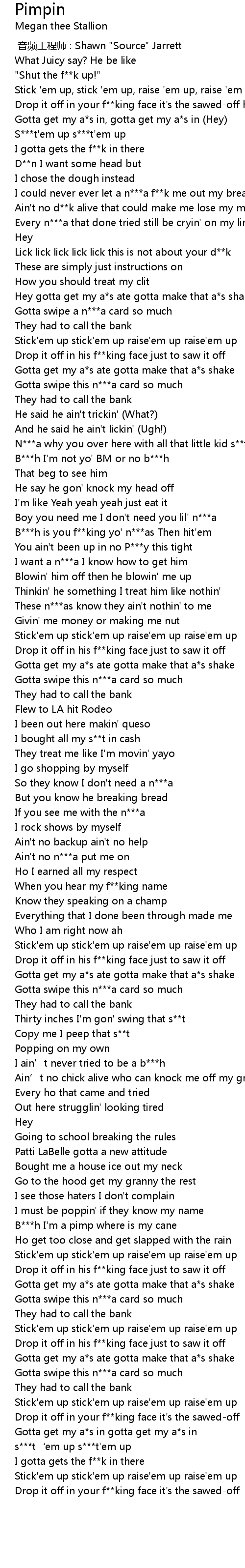 | [02:31.64] | B***h I'm a pimp where is my cane |