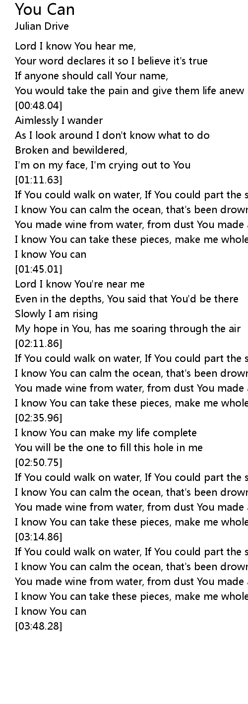 I know You can calm the ocean, that's been drowning me |