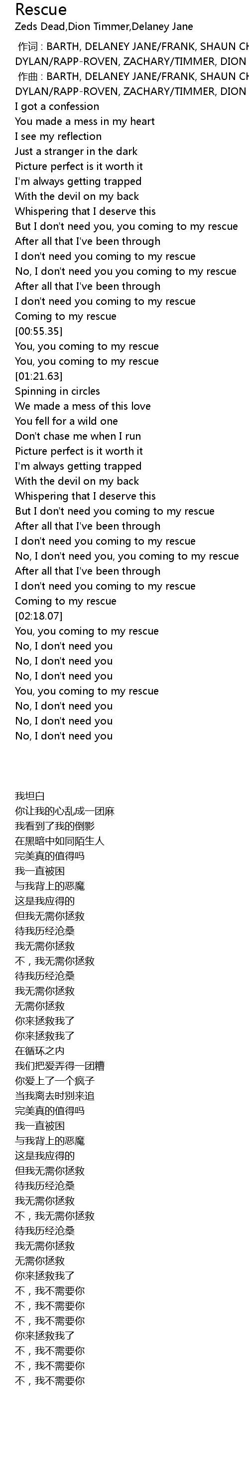 | [02:01.85] | No, I don't need you, you coming to my rescue |