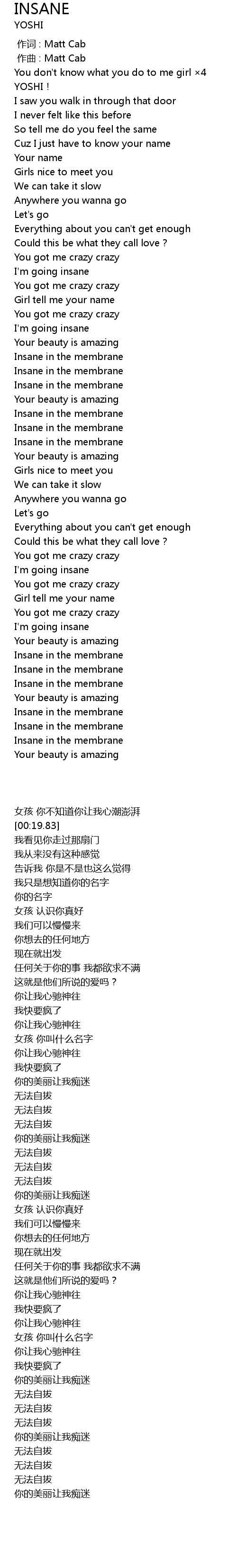 | [00:00.000] | 作词 : Matt Cab |