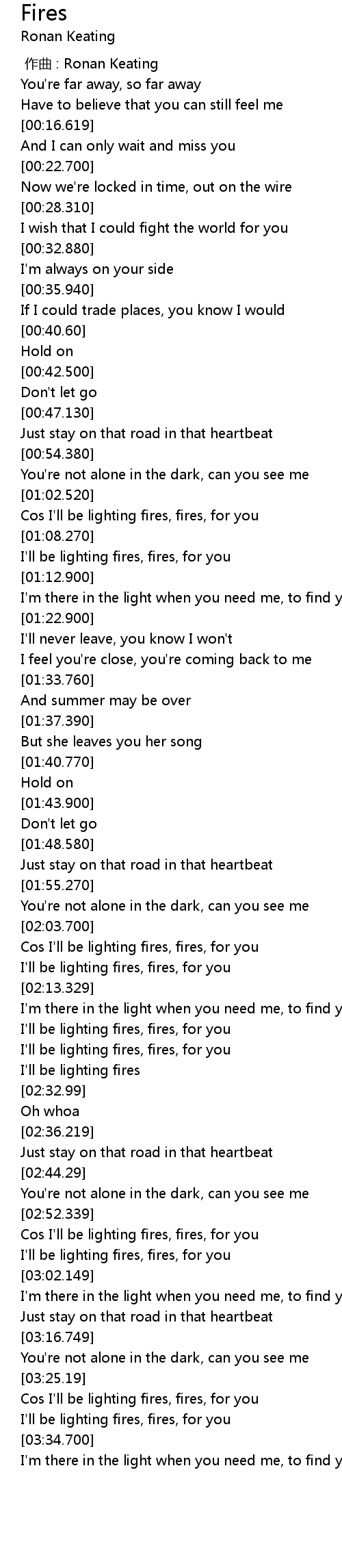 | [02:58.529] | I'll be lighting fires, fires, for you |